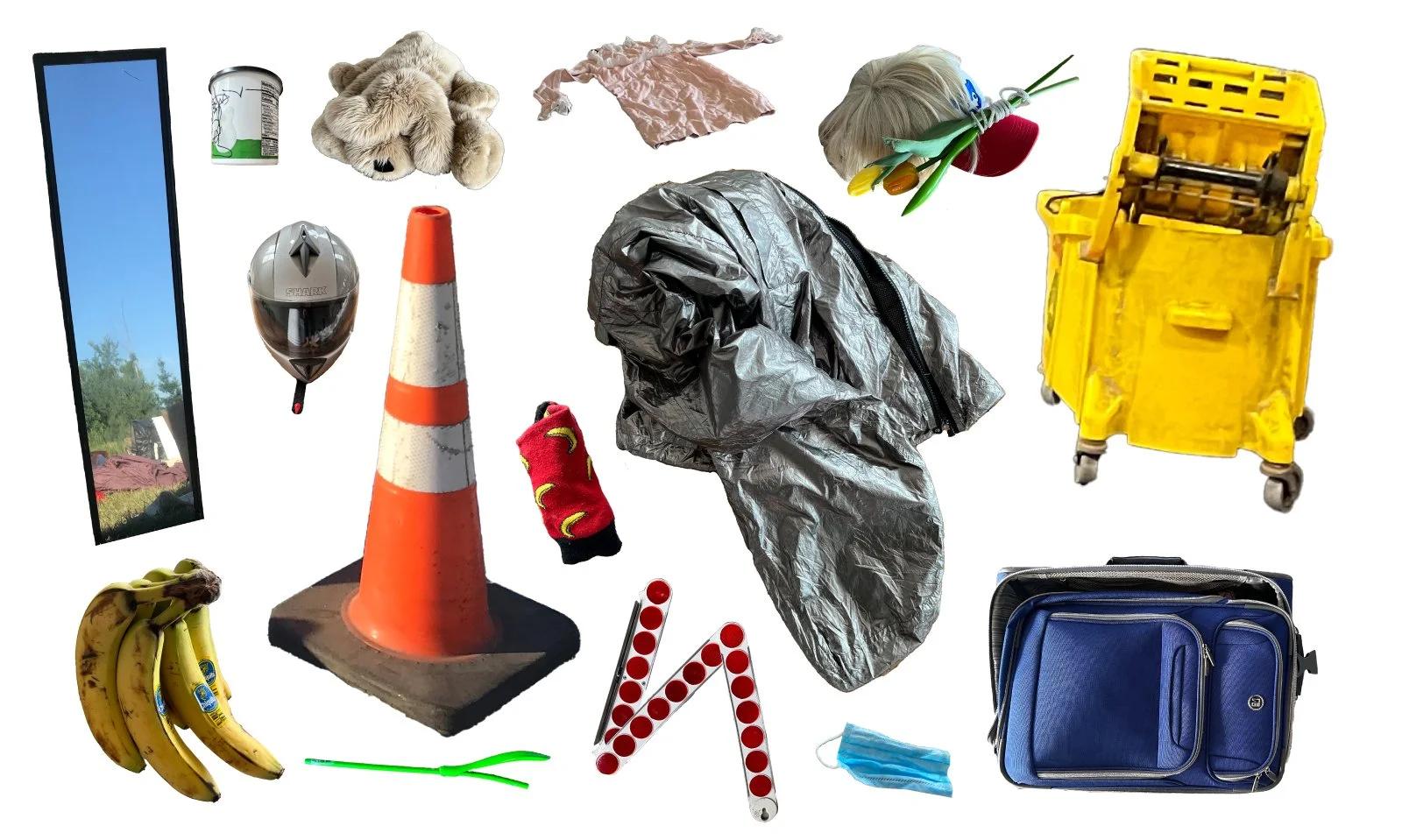 What a mess. The smell of dust, burnt plastic, a slight rot. The room is thick with symbols and sentiment. Everything is rubbing up on everything else. I want this, I need this, this exact thing, it’s irreplaceable, oh god, I’m so embarrassed. Ring! Someone is calling on the banana phone. Hello?! Every prop tells you how to pick it up. Wallet, phone, keys, a match. The generic is something so pervasive that we become unable to see it. A concept is cheap. Break the bookshelf, chew on the splinters, spit it out. How will we know whose garbage to take home? You wrote me a love letter but you said it wasn’t personal. I don’t remember getting a script but I keep talking. Dance means it’s stolen. Dance means it’s right now. Recycling means it will be used. Recycling means it will come back around. We want to start over and start over and start over but there is no getting out.