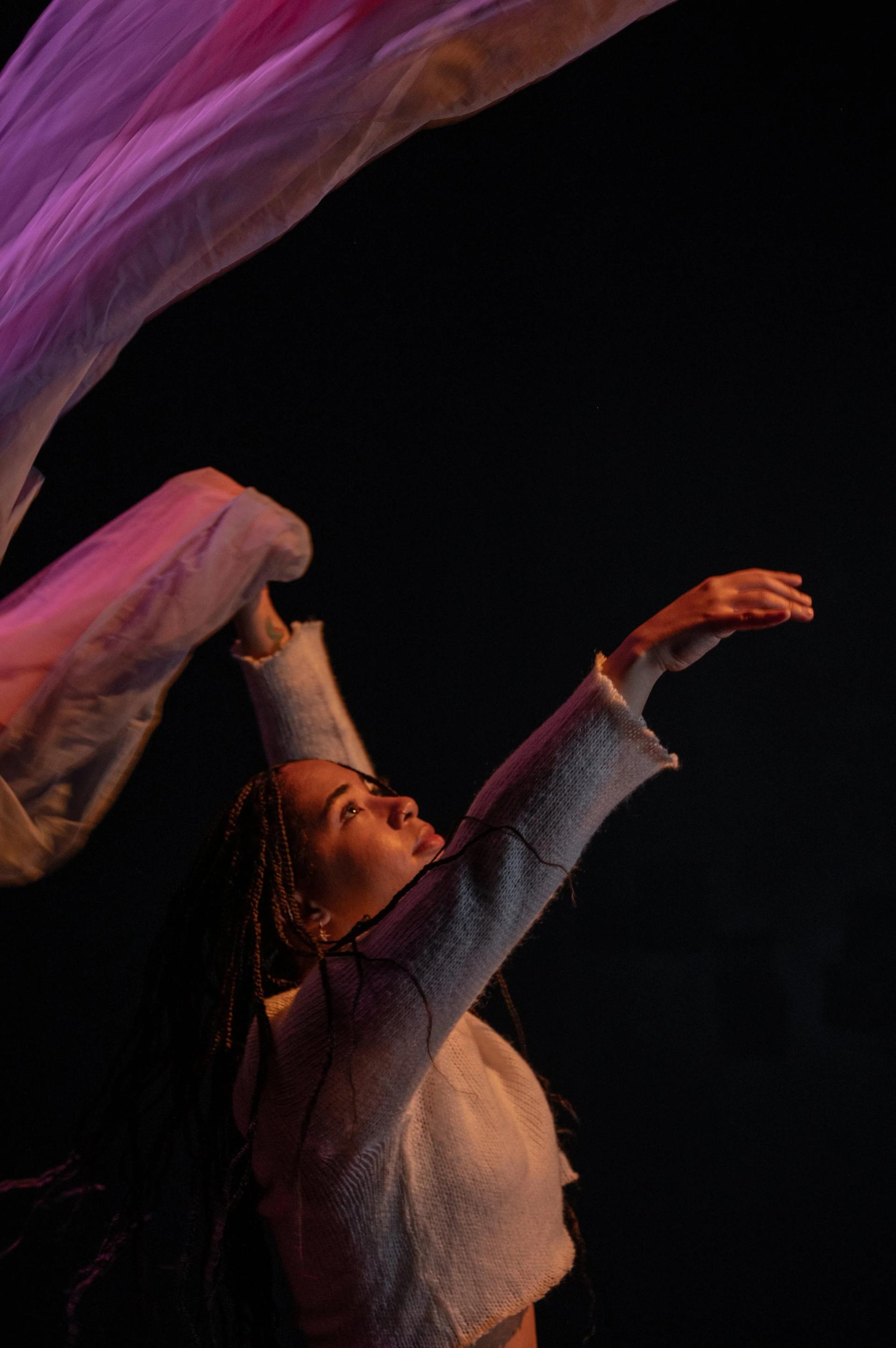 Portals through memory, a dream made under a blanket, daily little travels through time, a weary and hopeful reach toward futures. Generated from processes of grieving and the reimagining that comes after, this piece is a collage of movement, textile, and text.